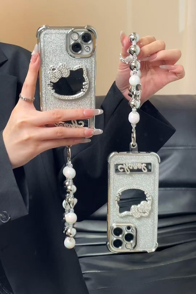 • キラキラ ハローキティ ミラー付き スマホケース(スマホケース + キラキラカード + ミラー + スタンド + ブレスレット 5点セット)