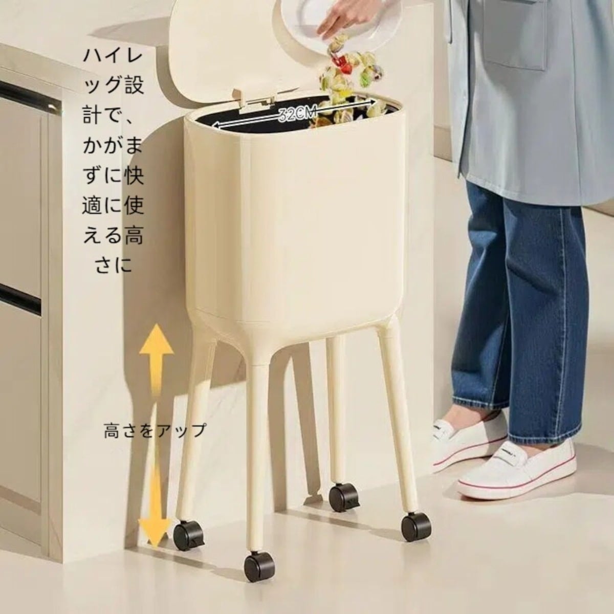 このかがまず使えるゴミ箱は、便利さとデザイン性を兼ね備えた優れたアイテムです!ハイレッグタイプの設計により、屈むことなく簡単にゴミを捨てることができ、ストレスフリーな使用感を実現します。キャスター付きなので、掃除などの際に移動もラクラク。シンプルでスタイリッシュなデザインは、どんなインテリアにもマッチし、お部屋を美しく保ちます!