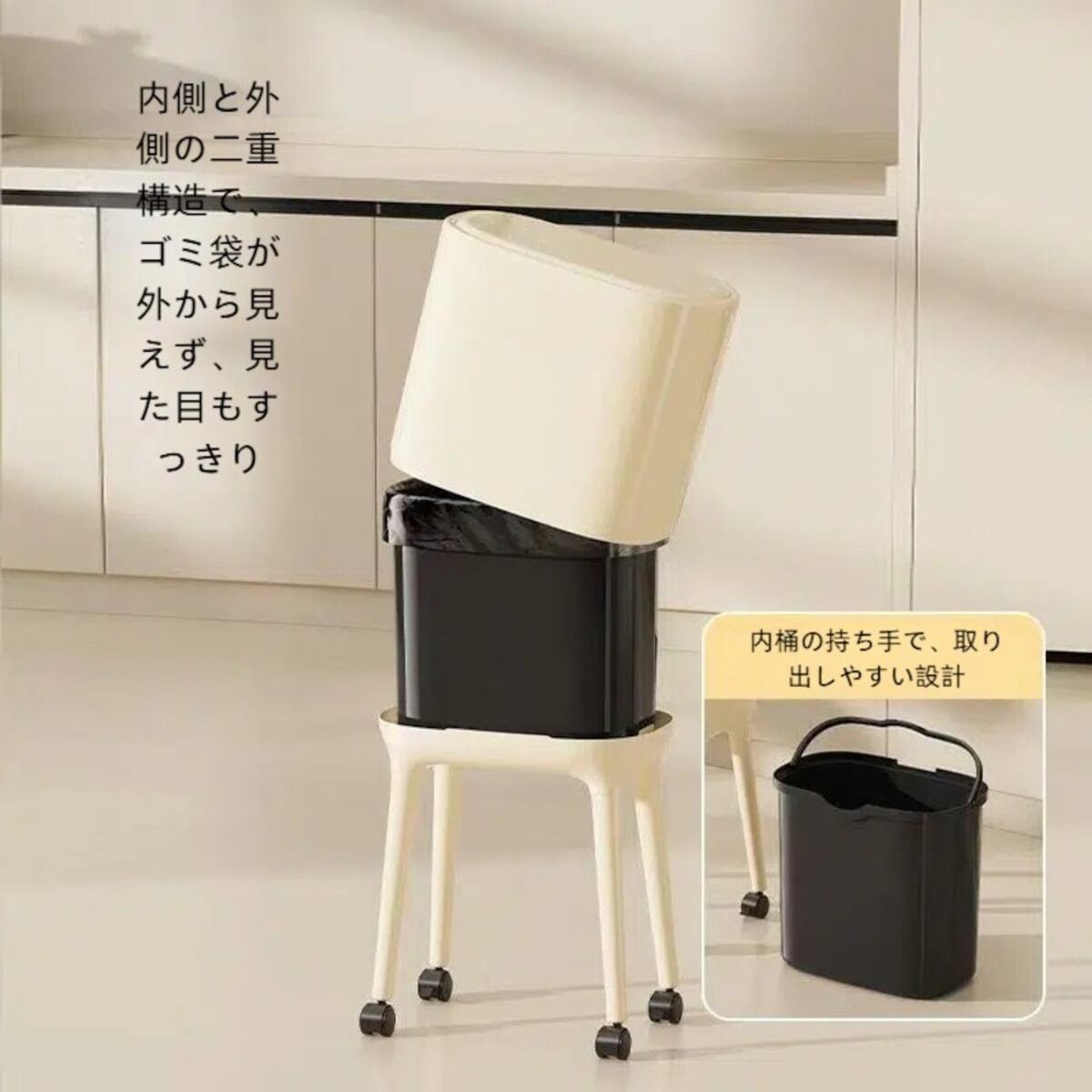 かがまず使えるゴミ箱|キャスター付きで移動もラクなハイレッグタイプ