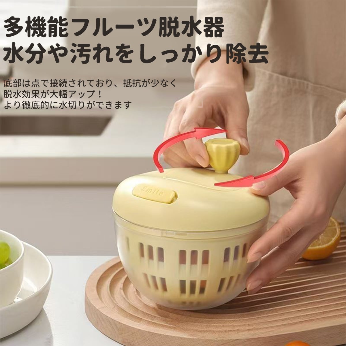 多機能野菜フルーツ水切りボウルはサラダ作りやフルーツ洗浄に最適です 半自動洗浄機能で手間を減らせ毎日の調理を便利にします 高品質素材で耐久性があり長く安心して使用できます