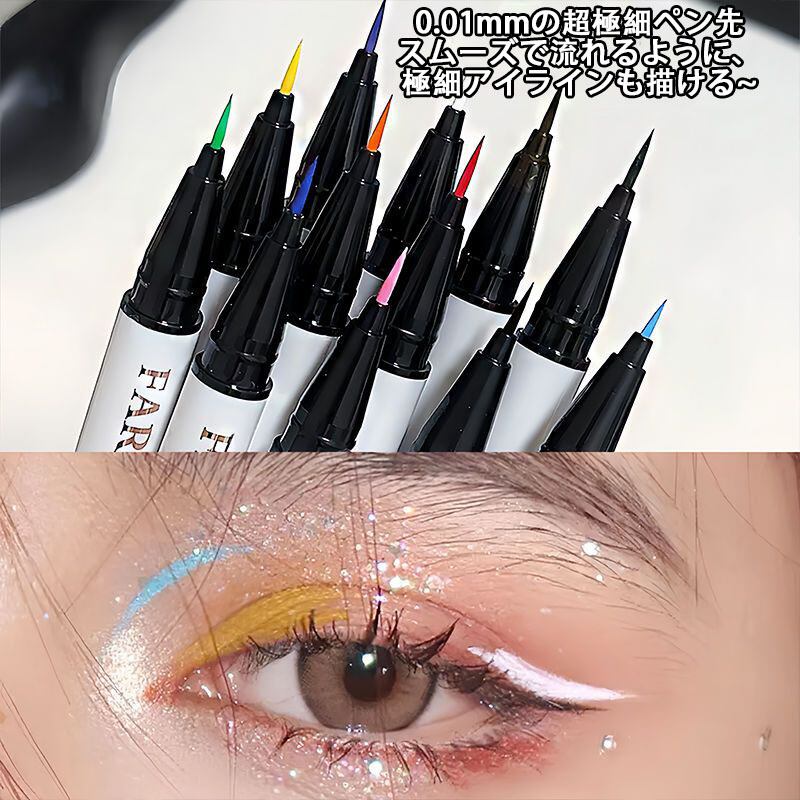 細筆で描きやすく、自由自在にカラフルメイクを楽しめるアイライナーです✨