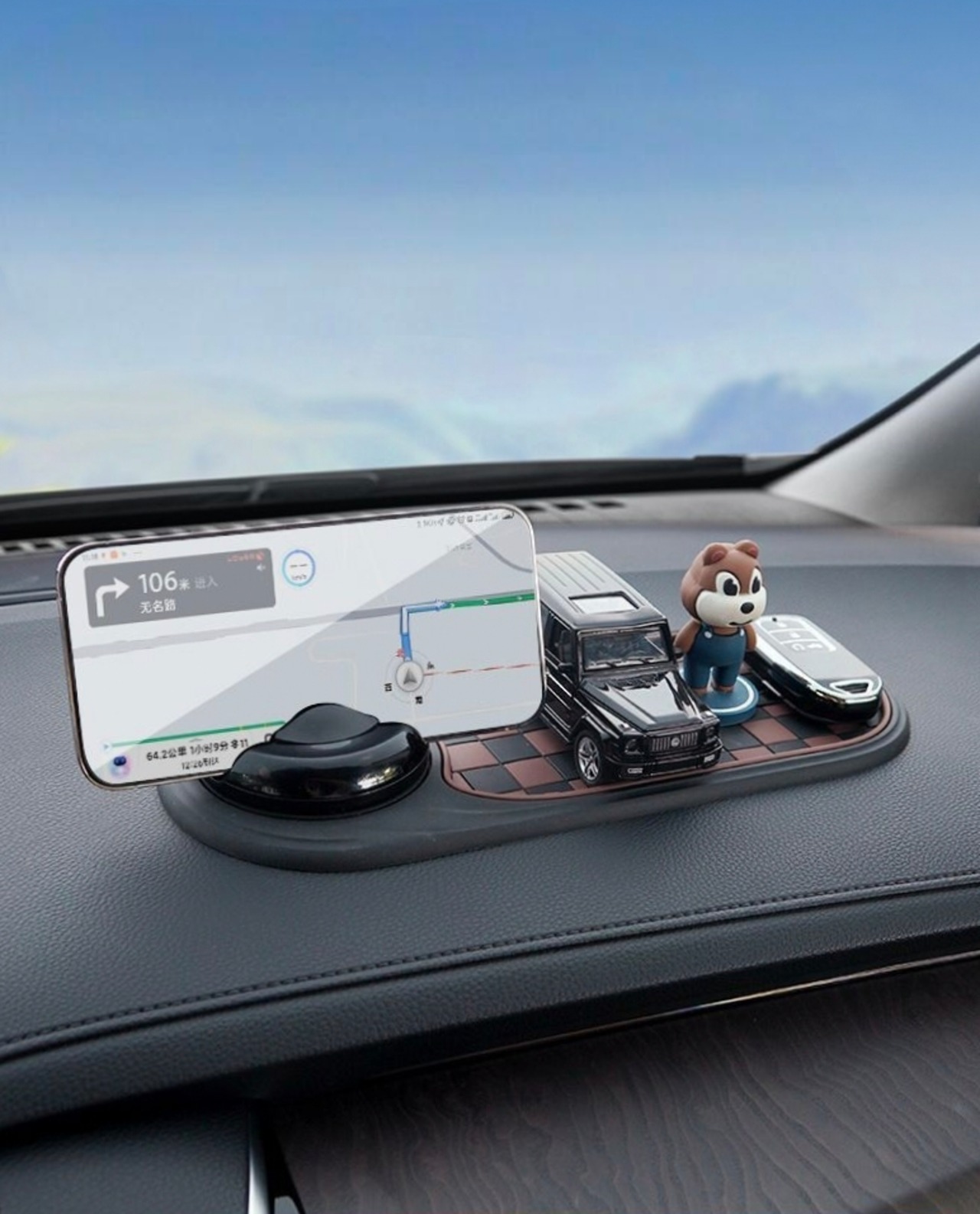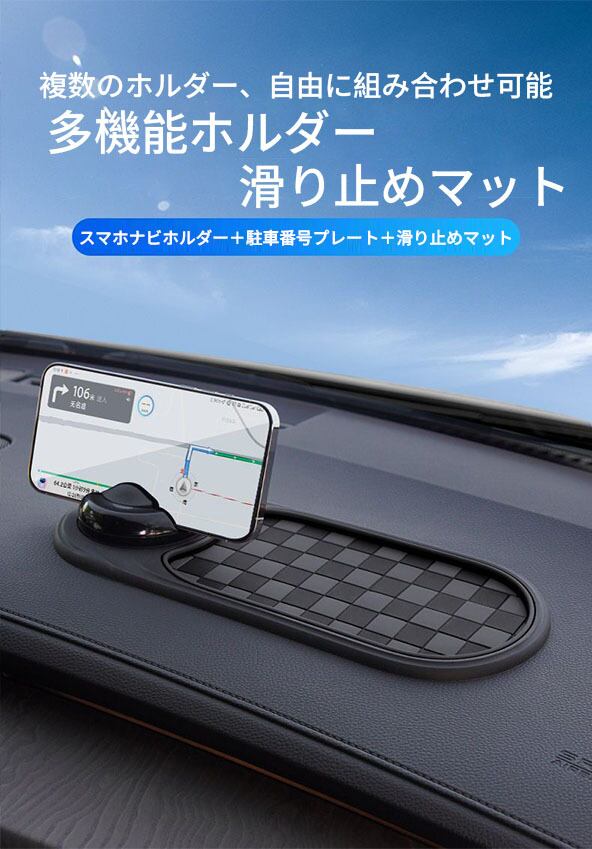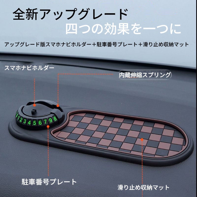 多機能車載滑り止めマット|スマホスタンド+番号札