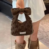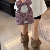 完成品のムースヤーン手編みバッグです。届いたその日からすぐに使えるトート&ショルダーの2WAYデザインで、クリスマスのコーデにもぴったり。柔らかく温かみのある素材で、手触りも抜群。数量限定なので、気になる方はお早めにゲットしてください!