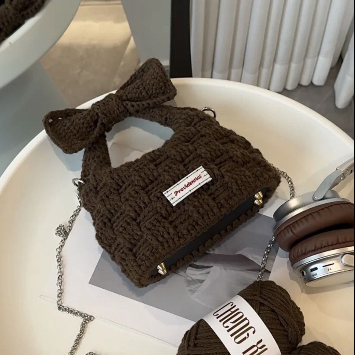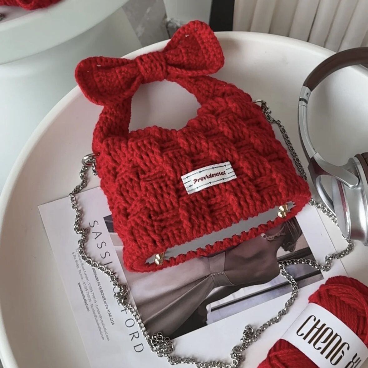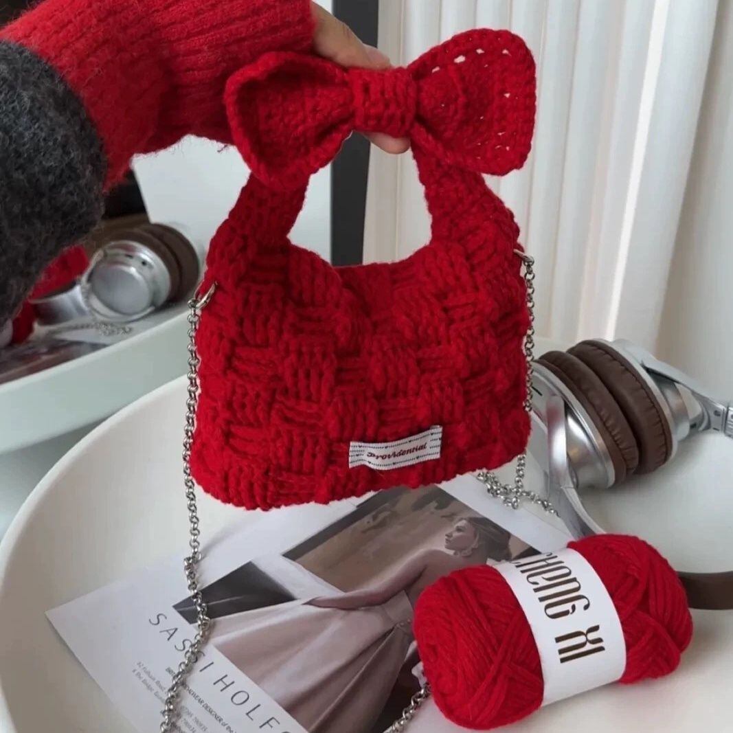 【完成品】ムースヤーン手編みバッグ|クリスマスドーパミン風トート&ショルダー