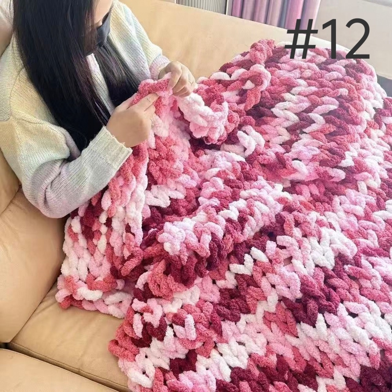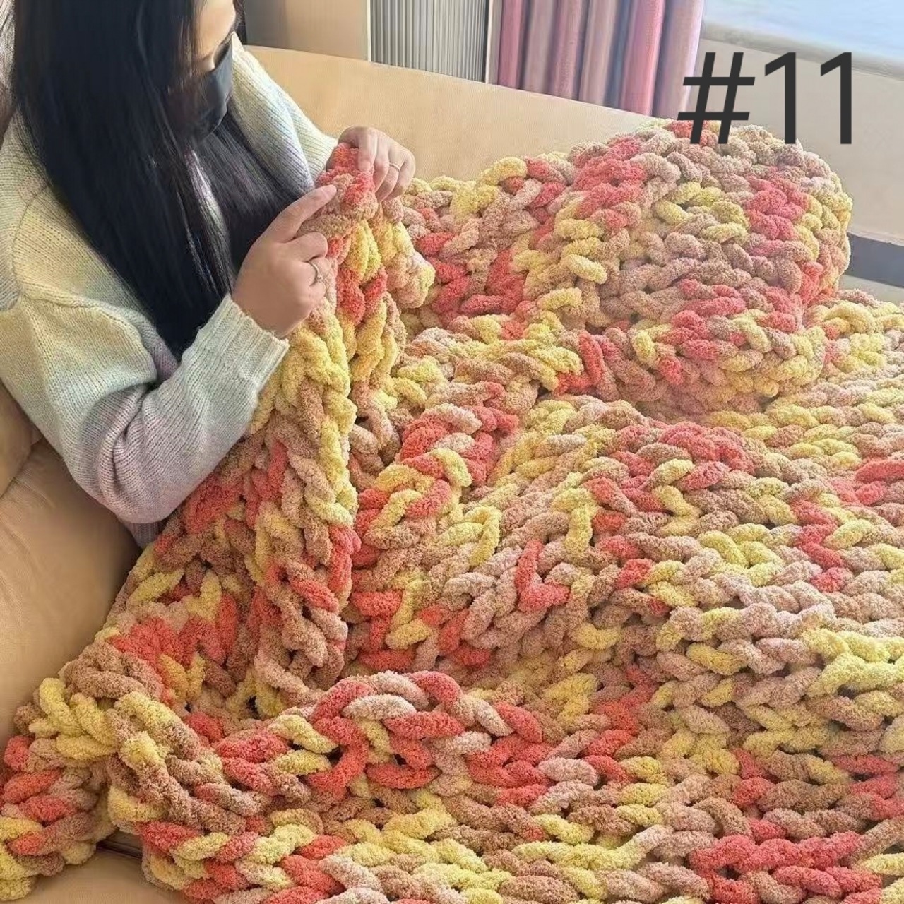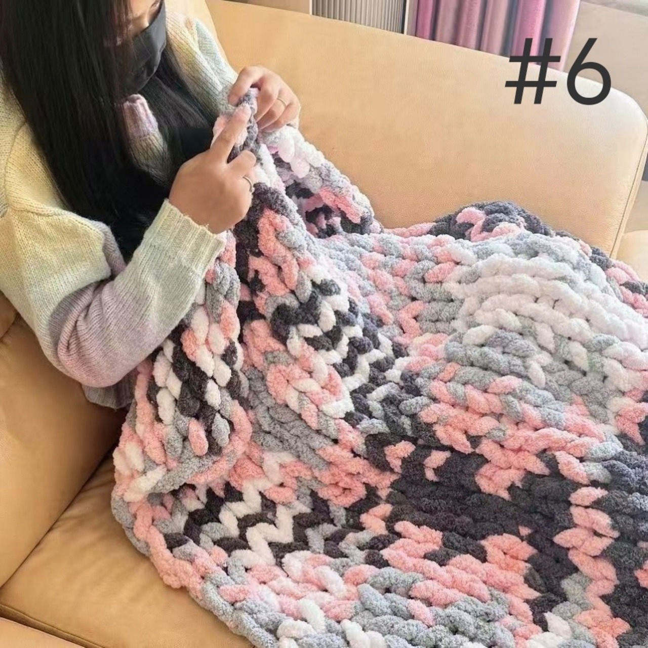 猫しっぽ特太毛糸DIY手指編みマフラー&レインボー毛布・クッション材料キット|初心者でも簡単に楽しめる