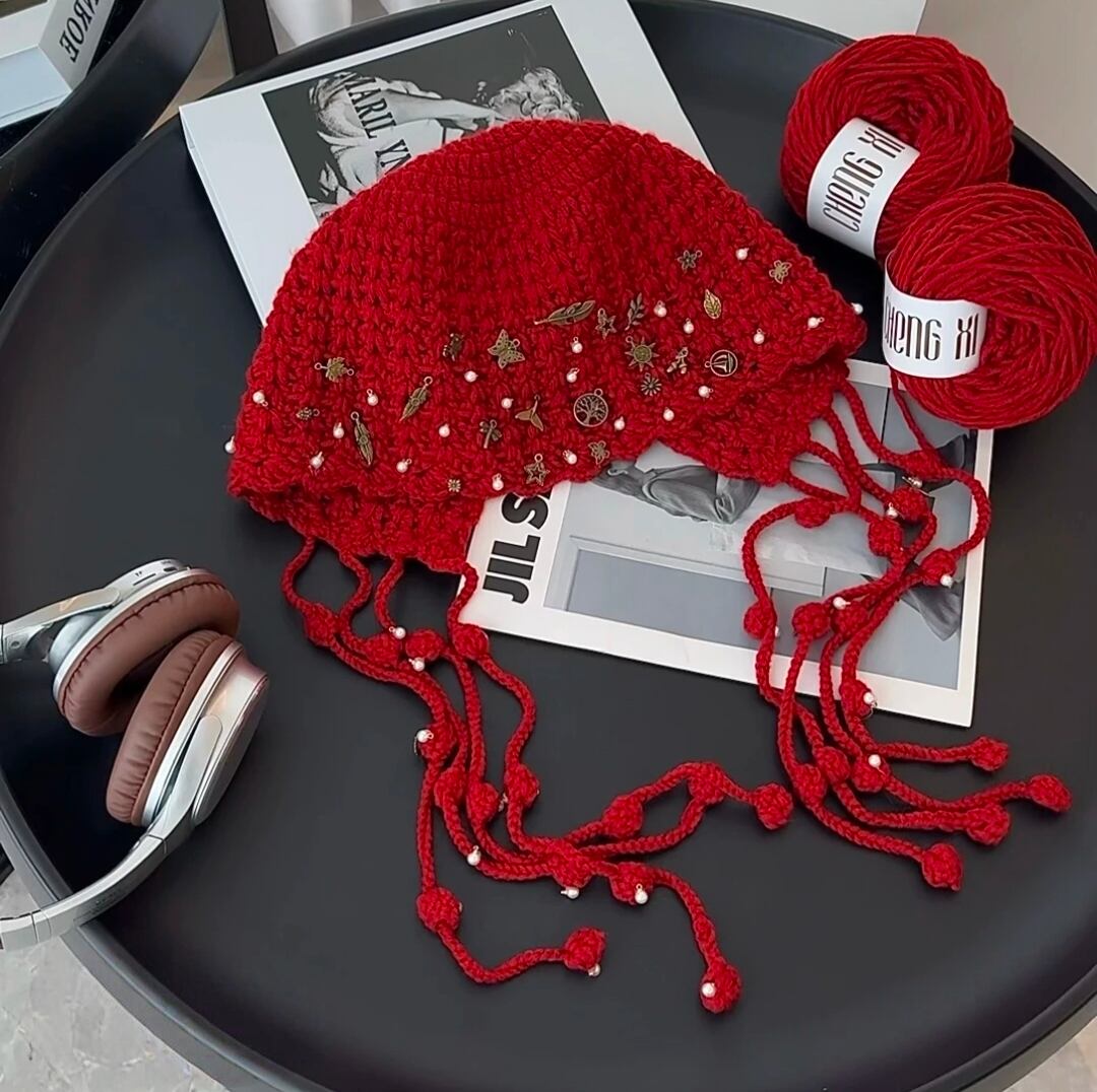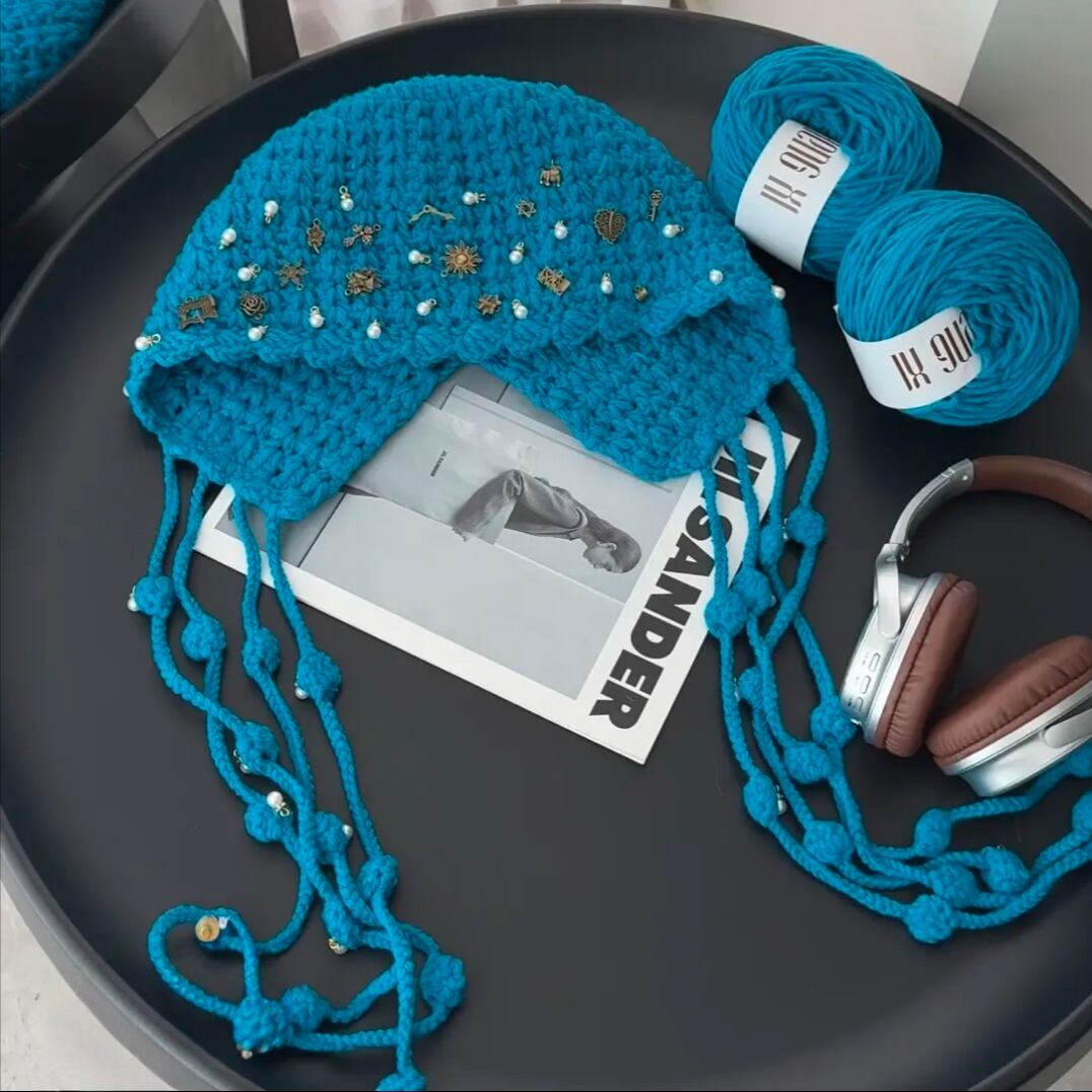 帽子のデザインはユニークなクラゲのフリンジ付きで、完成後はおしゃれで個性的なアイテムとして日常でも大活躍。自分用はもちろん、友達や家族へのプレゼントにも最適です。