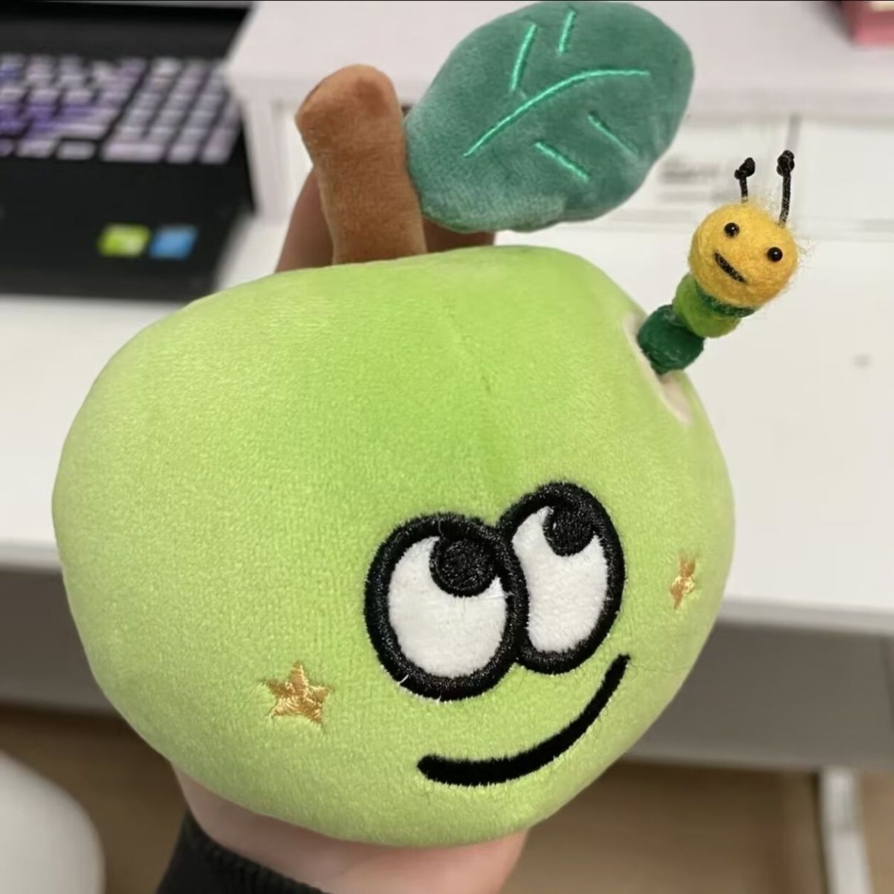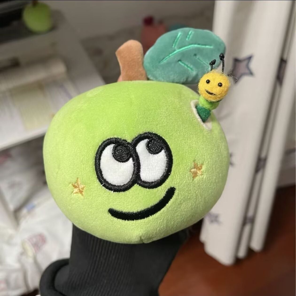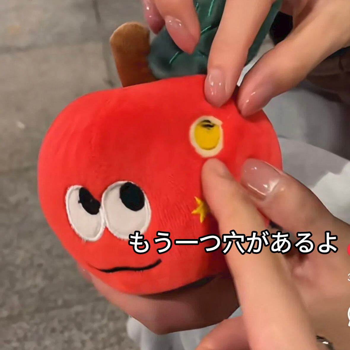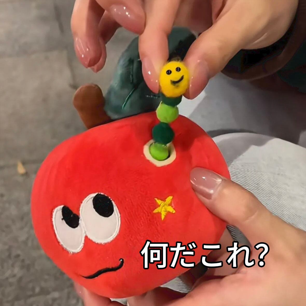キュートなデザイン:リンゴとぬいぐるみの組み合わせで、手触りふわふわ