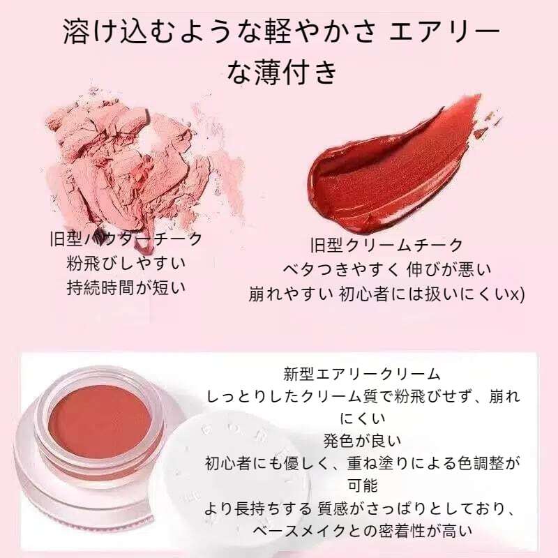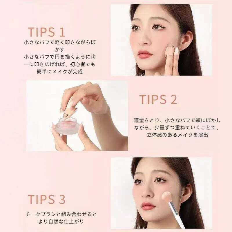 マルチユース:チークだけでなくアイシャドウやリップにも使用可能で、統一感のあるメイクに。