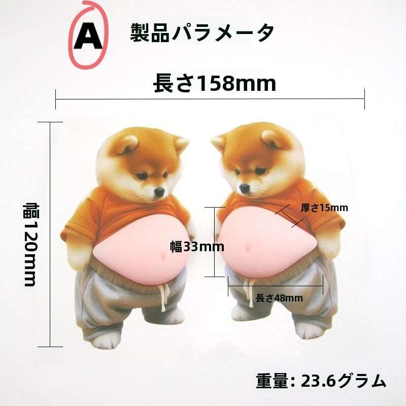 コーギー犬デザインの柔らかいシリコン製大型お腹型防撞ステッカー車用・家庭用兼用衝撃吸収で車や家具を保護かわいらしいデザインでインテリアや車内のアクセントにも最適弾力性のある素材で取り付け簡単、落下や剥がれにくい日常生活やドライブ中の軽い衝撃から守る多用途シリコンパッドギフトやデコレーションにもおすすめ