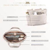 20Lの大容量で、A4書類やノートPC、コスメなど日常に必要な物をすっきり収納。