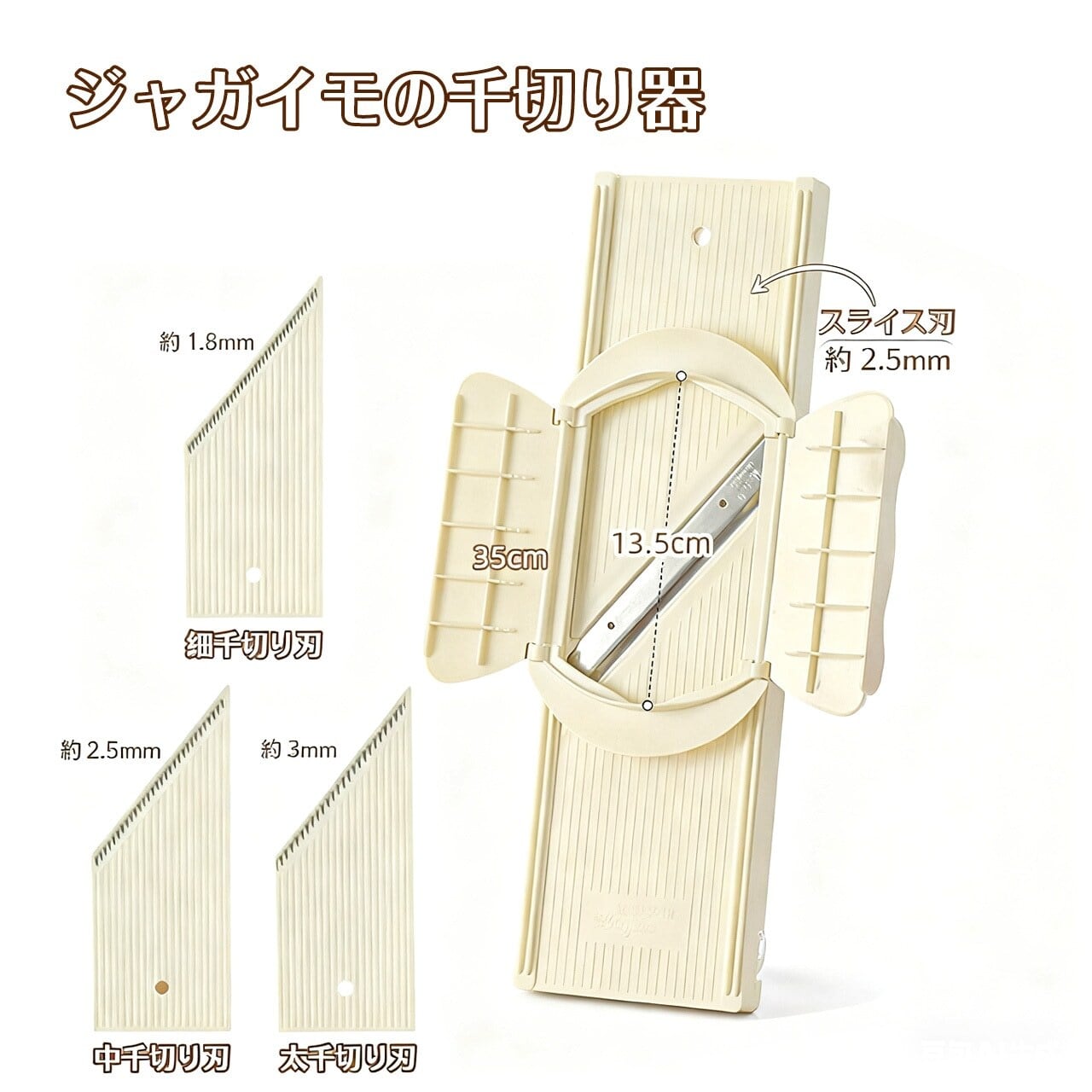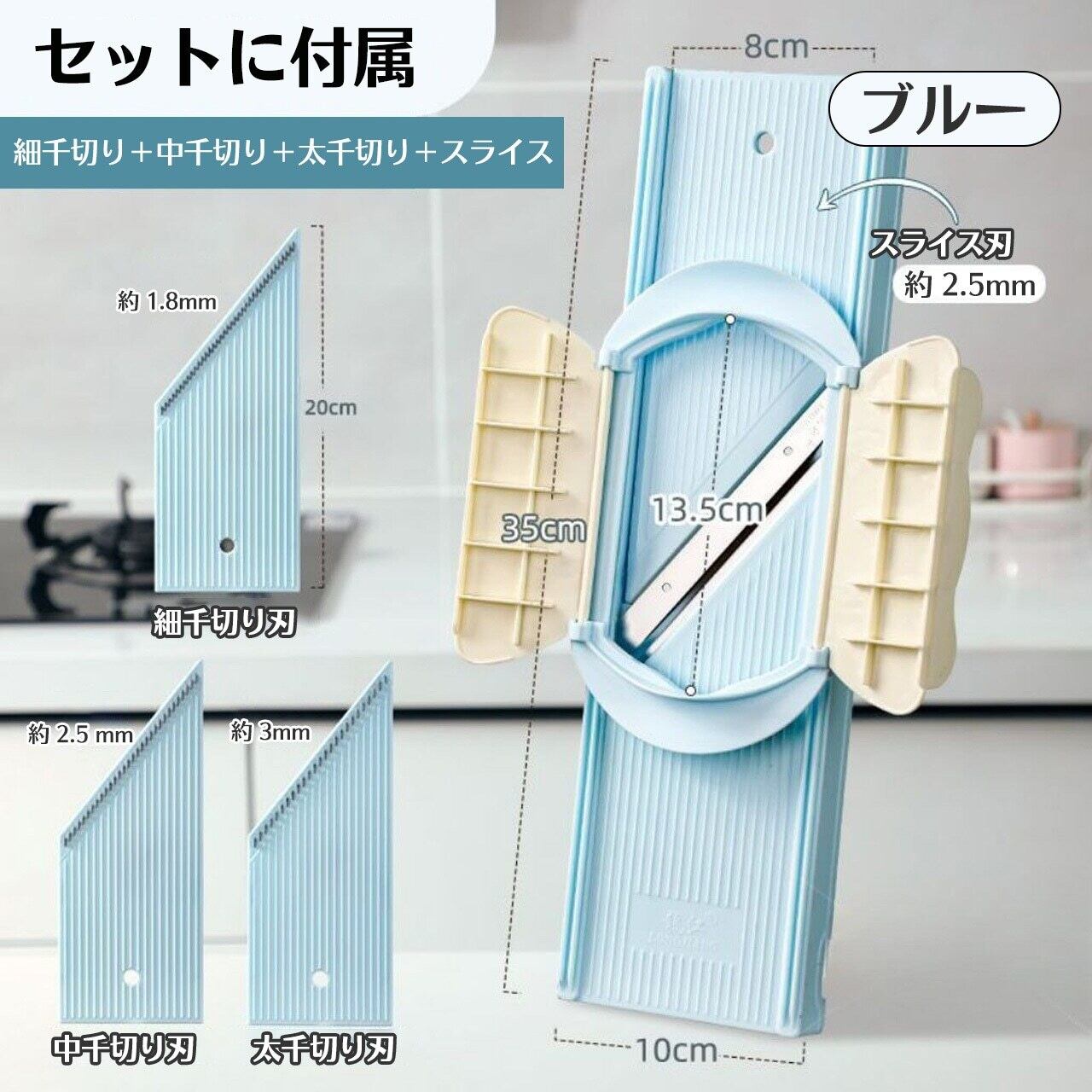 セット:細千切り(1.8mm)+中千切り(2.5mm)+太千切り(3mm)+スライス(2.5mm)