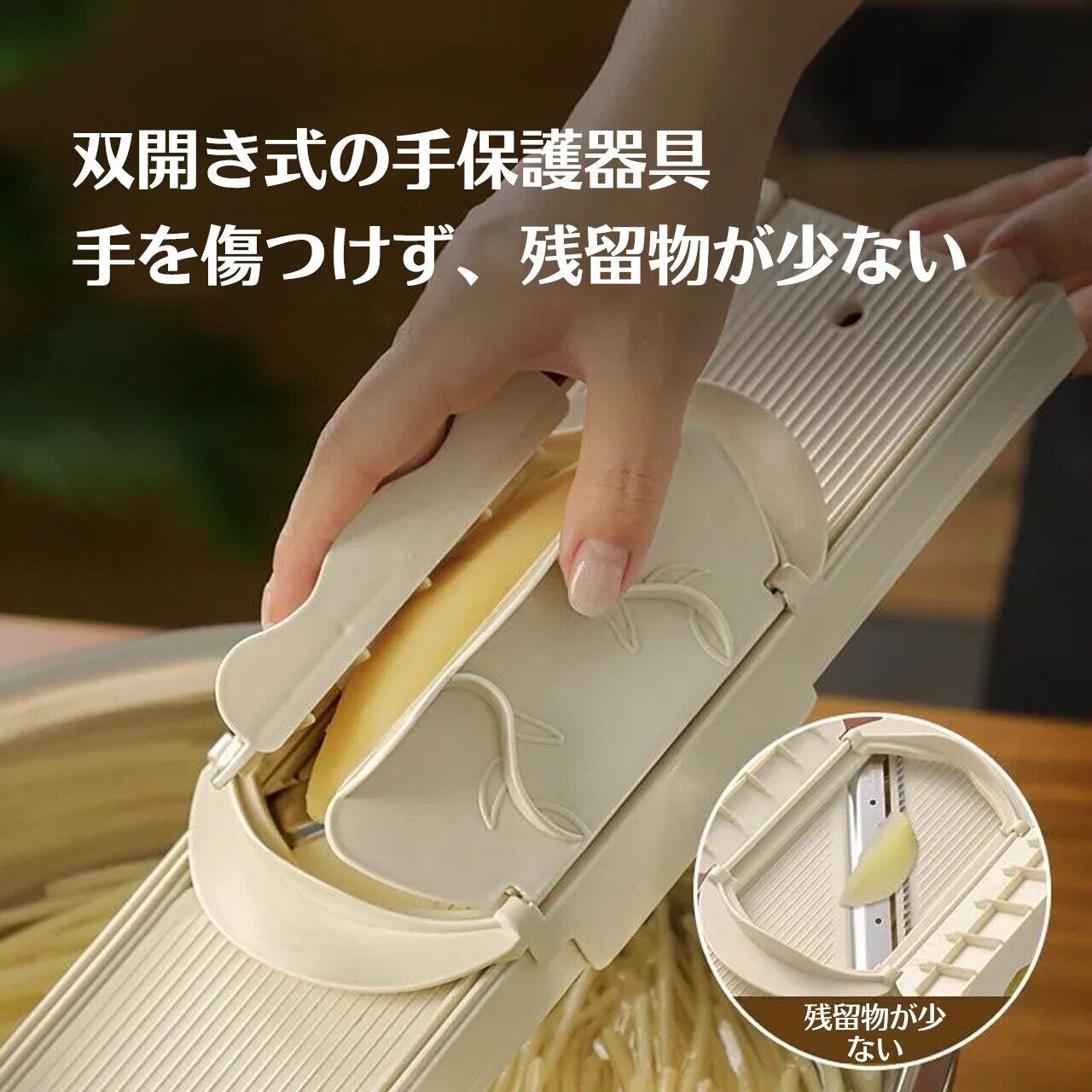 多機能の野菜切り・ジャガイモの千切り用の家庭用千切り器・すりおろし器・手を保護する擦り板式の切り器