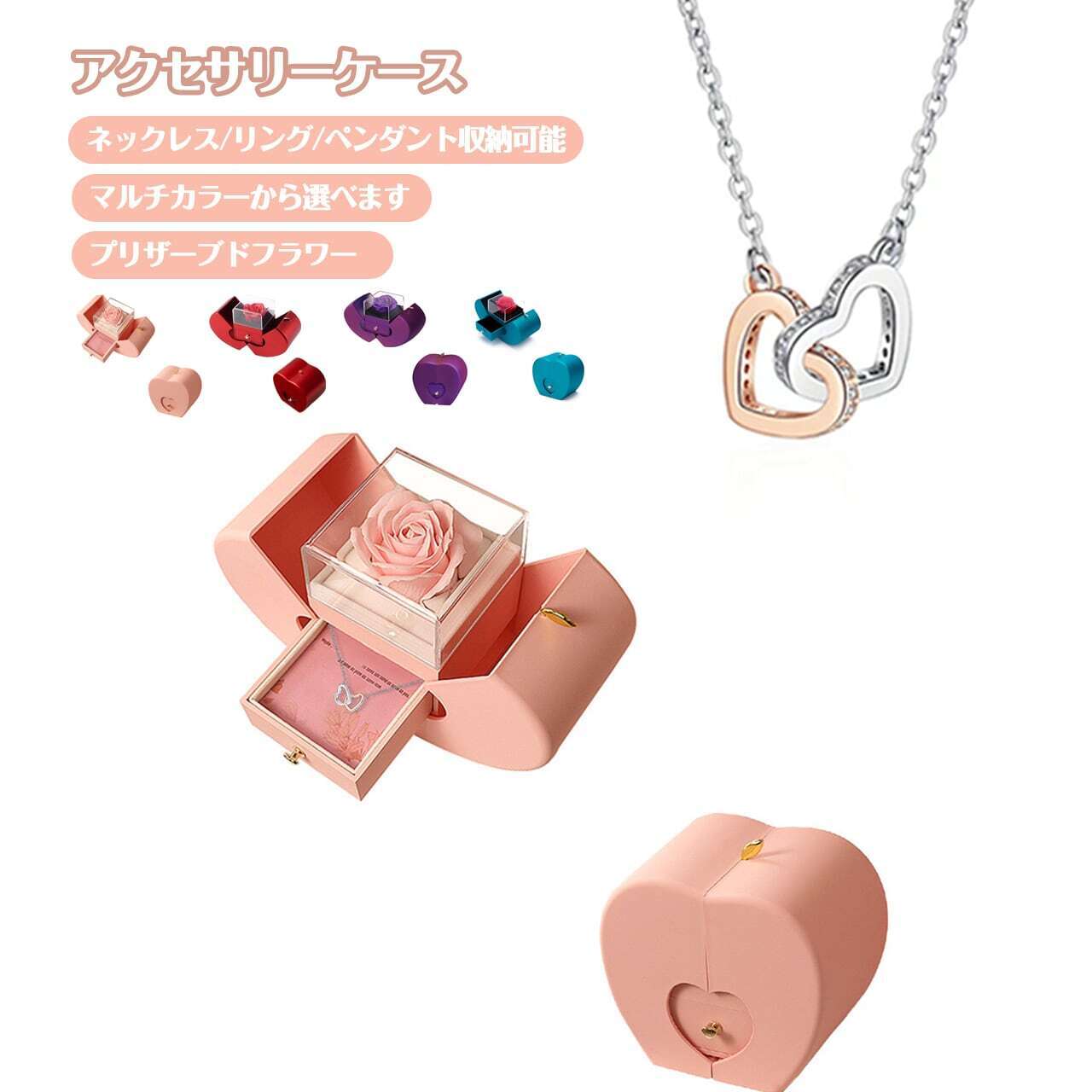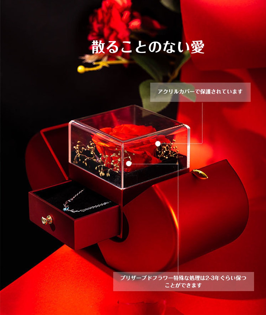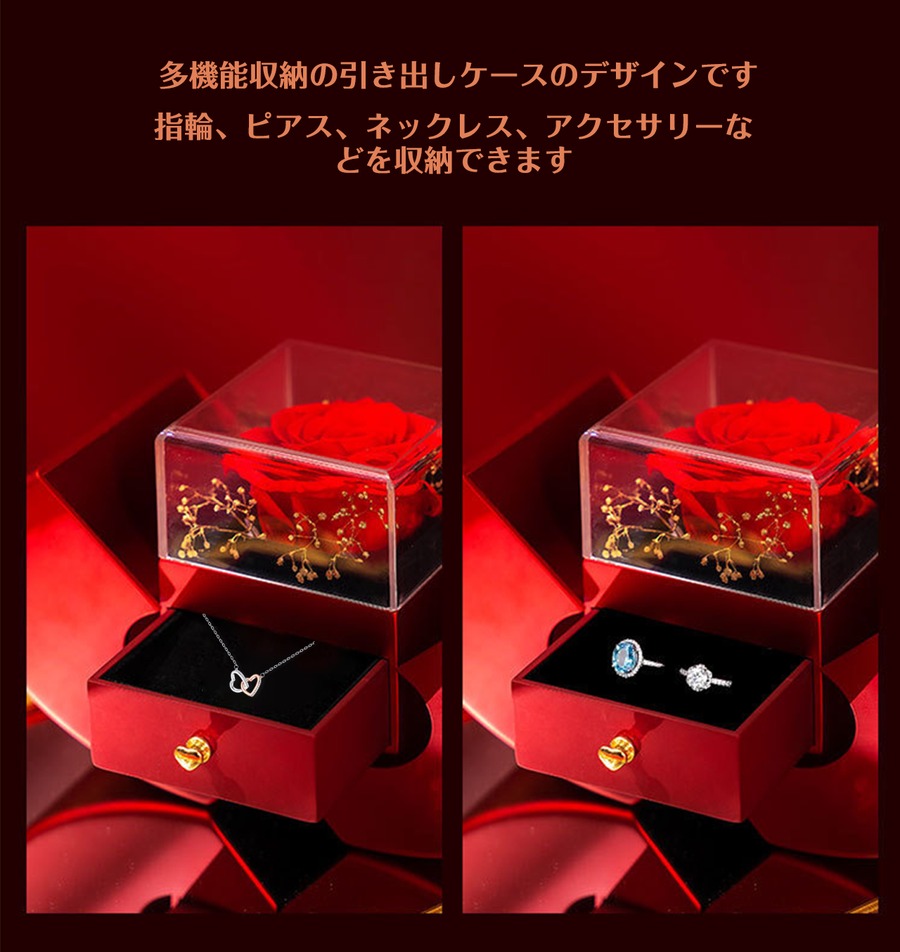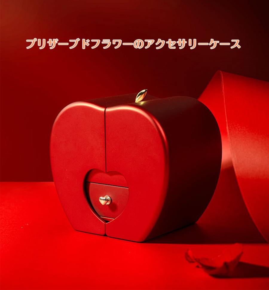プリザーブドフラワーリンゴアクセサリーケースジュエリーギフトケースローズリングネックレスパッケージ収納ケース【ネックレスはアレルギー防止の金属】