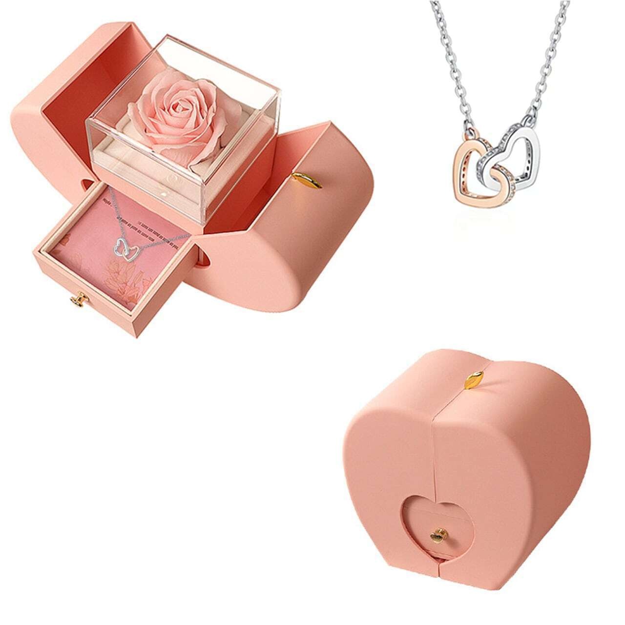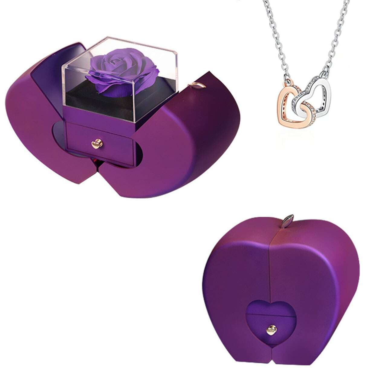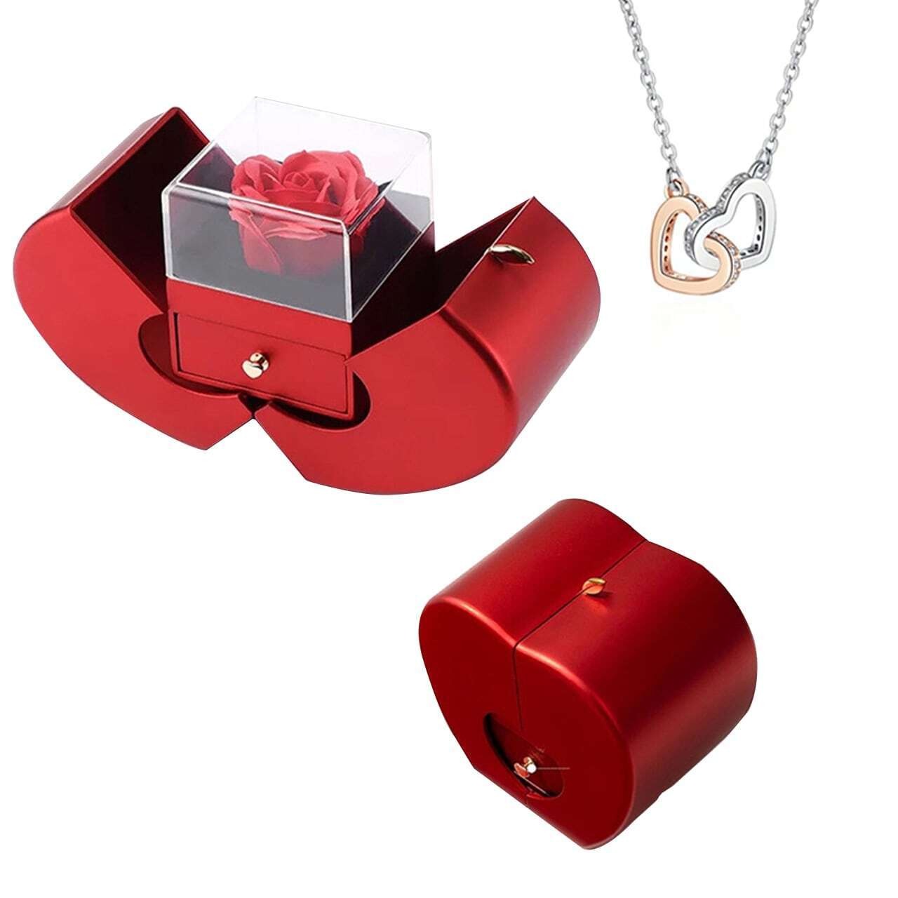 プリザーブドフラワーリンゴアクセサリーケースジュエリーギフトケースローズリングネックレスパッケージ収納ケース【ネックレスはアレルギー防止の金属】