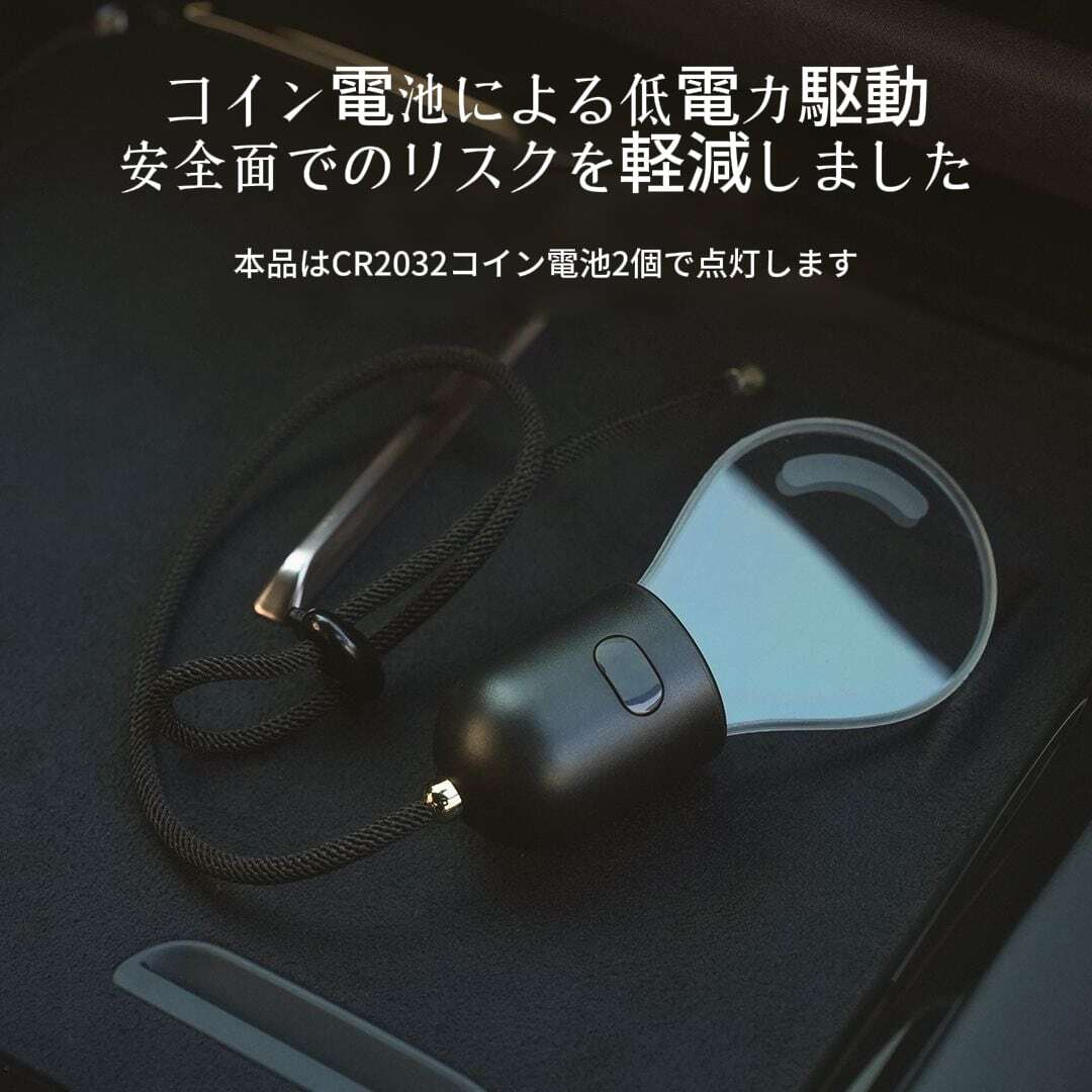 エンジン始動や走行時にやさしく光り、夜間の車内をおしゃれな空間に演出。キーや車内アクセサリーとしても使え、実用性とデザイン性を兼ね備えています。
