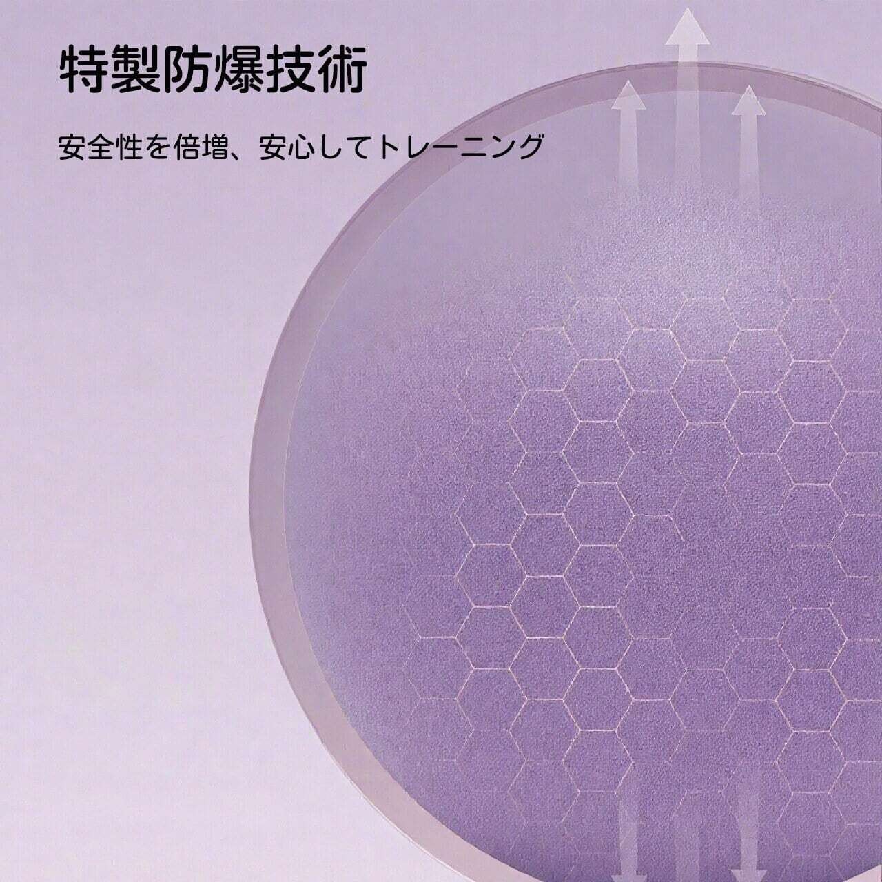 → 厚手PVC+防爆加工で、静荷重100kgOK。押しても割れず、安心して運動できる。