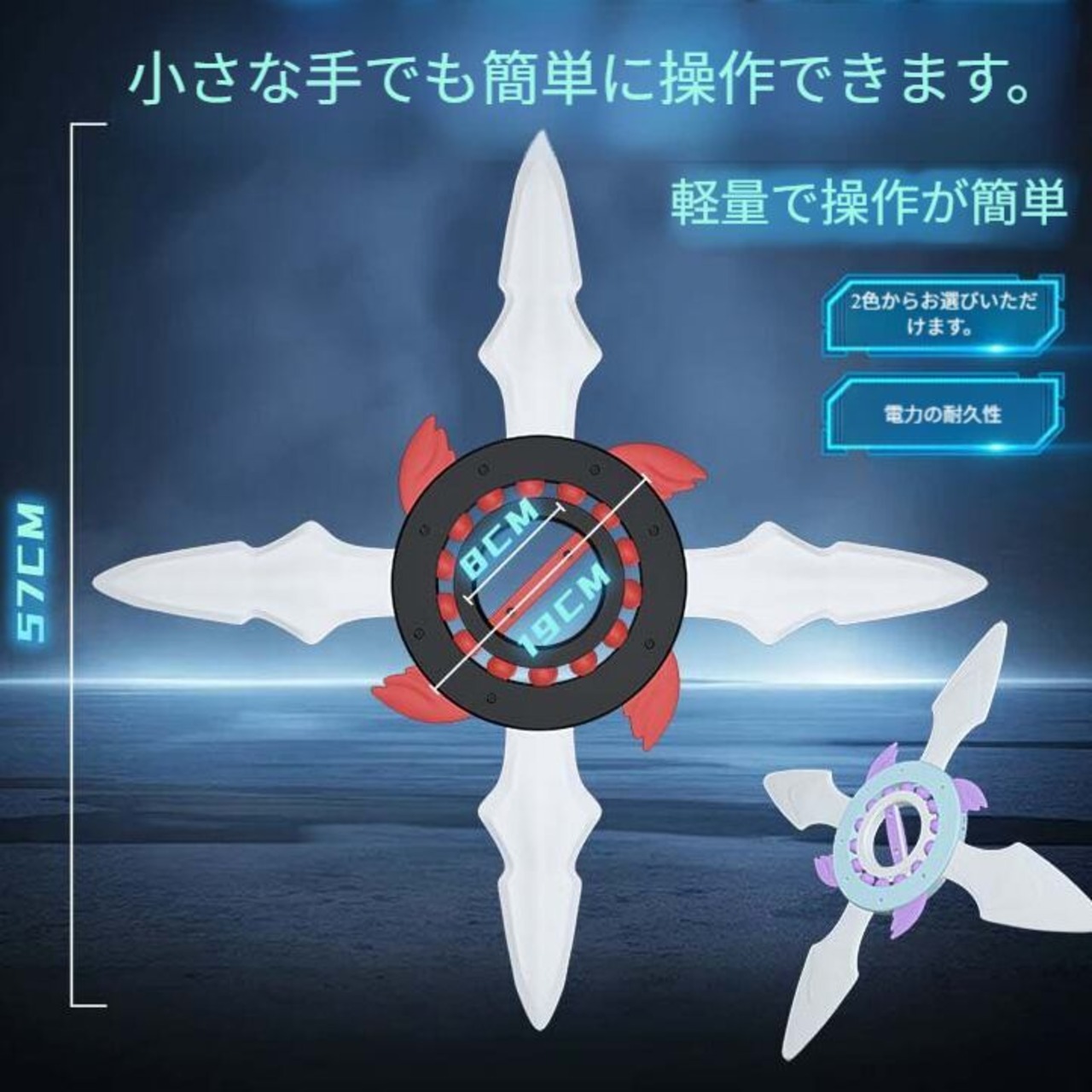 手裏剣のデザインは独特で、人体工学的に設計されており、子供が握りやすいです。軽く振ると、手裏剣がすぐに高速回転し始めます。