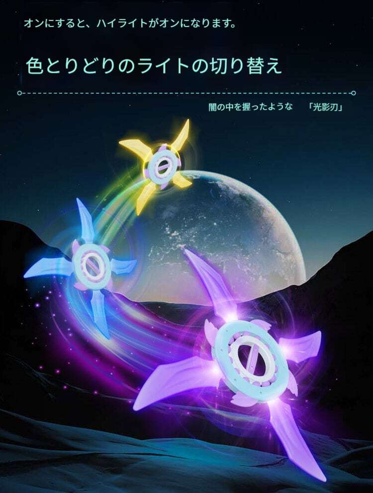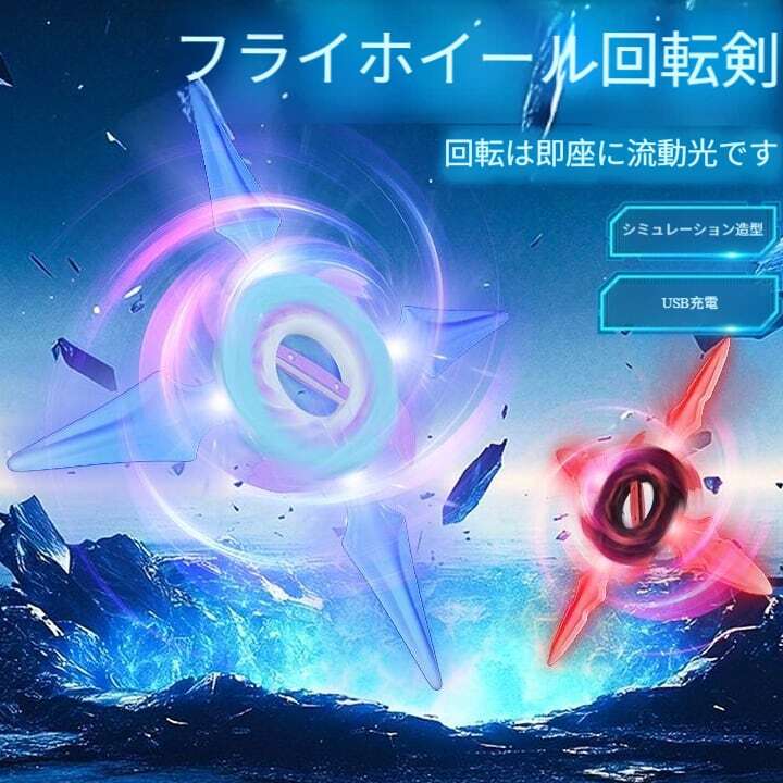光るフライホイール回転手裏剣、カッコいいライト付き七色発光剣、男の子のおもちゃ