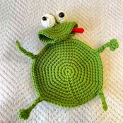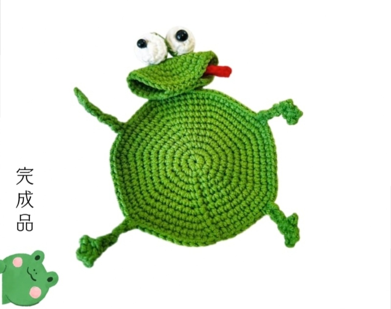 —— 手編みによるカエル型コースター。